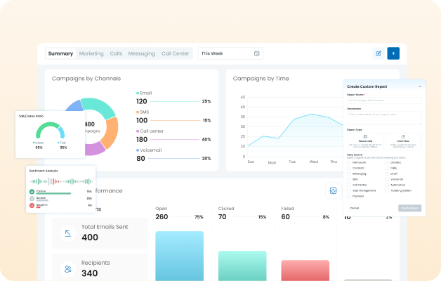 Access real-time dashboards, custom reports, voice analytics, and AI-powered insights. Track performance, understand customer behavior, and make data-driven decisions faster.
