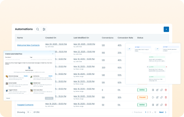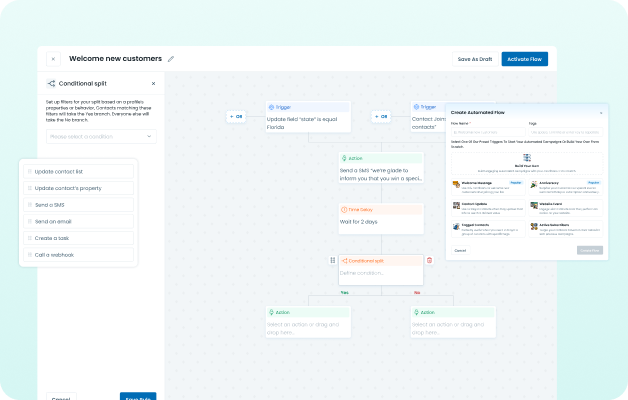 Automate customer engagement, follow-ups, and alerts using pre-defined templates and a drag-and-drop flow designer. Reduce manual work, ensure consistency, and improve response speed across teams.
